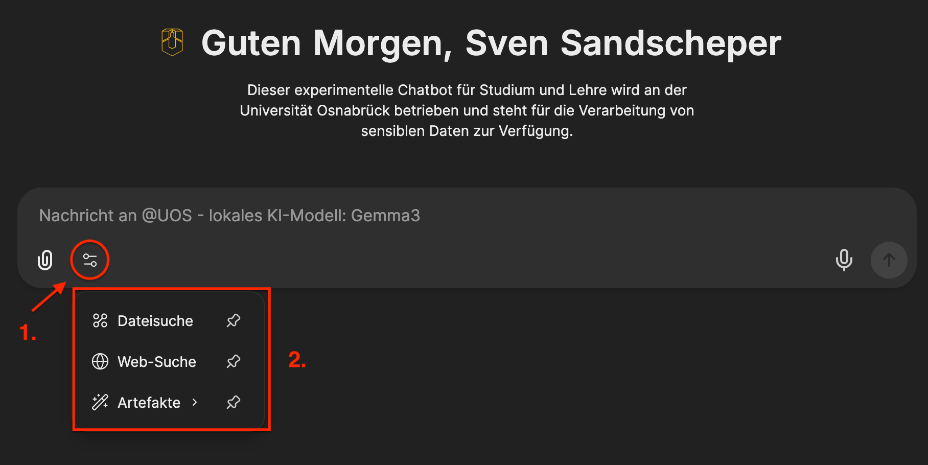 Angehörige der Uni Osnabrück können in kiwi auf an der Uni betriebene Open-Source Sprachmodelle zugreifen. Die eingegebenen Daten werden nicht an externe Anbieter weitergegeben und somit auch nicht weiterverarbeitet. Das bringt den Vorteil mit sich, dass in diese Modelle auch sensible Daten (wie bspw. personenbezogene Daten oder Werke Dritter) eingegeben werden dürfen, solange keine Werkzeuge aktiviert sind. Dann werden ggf. dennoch Daten weitergegeben, sodass keine sensiblen Daten eingegeben werden dürfen.